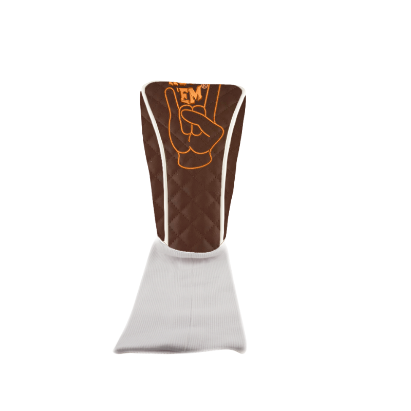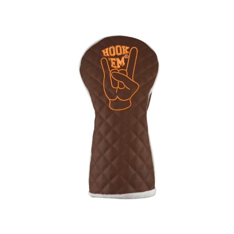 The Hook ‘Em® Symbol Driver Headcover highlights the iconic hand gesture in detailed embroidery using official burnt orange or white thread. It’s a statement piece that instantly adds Texas pride to your bag.