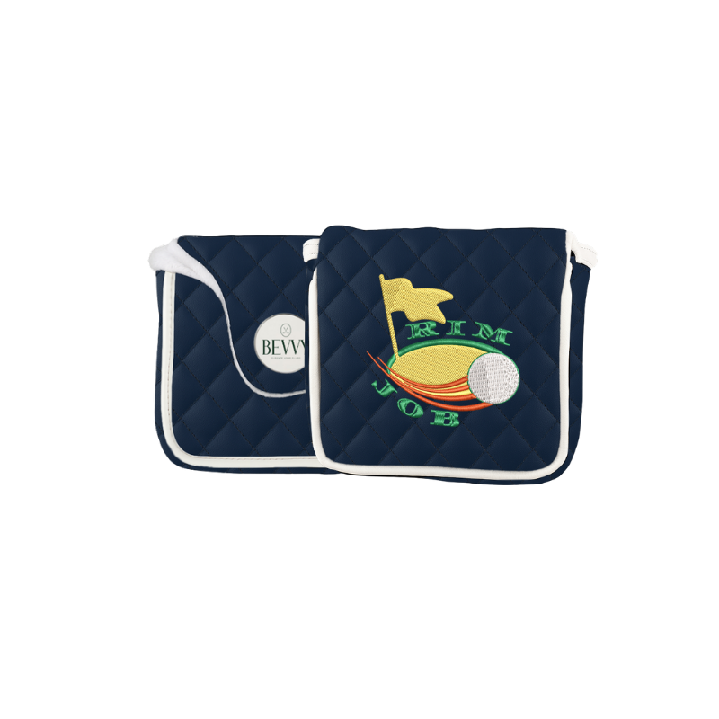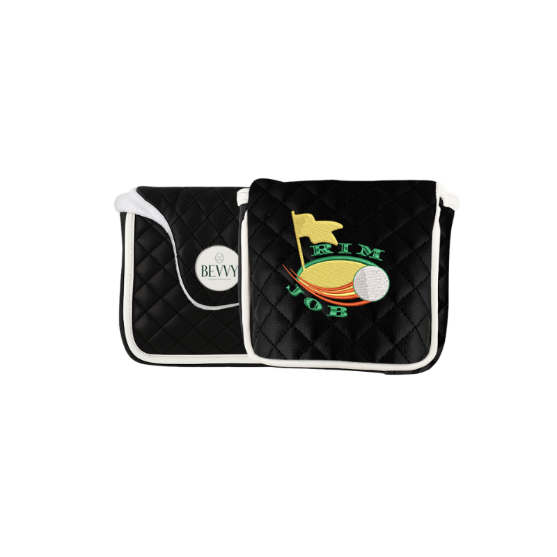 Make a statement on the green with the Rim Job mallet putter cover—where bold design meets premium protection. Crafted with high-quality materials, this cover keeps your putter safe while adding a touch of personality to your bag. Designed for both style and durability, it features a sleek, durable finish with secure magnetic closure for a perfect fit. Elevate your short game with style.
