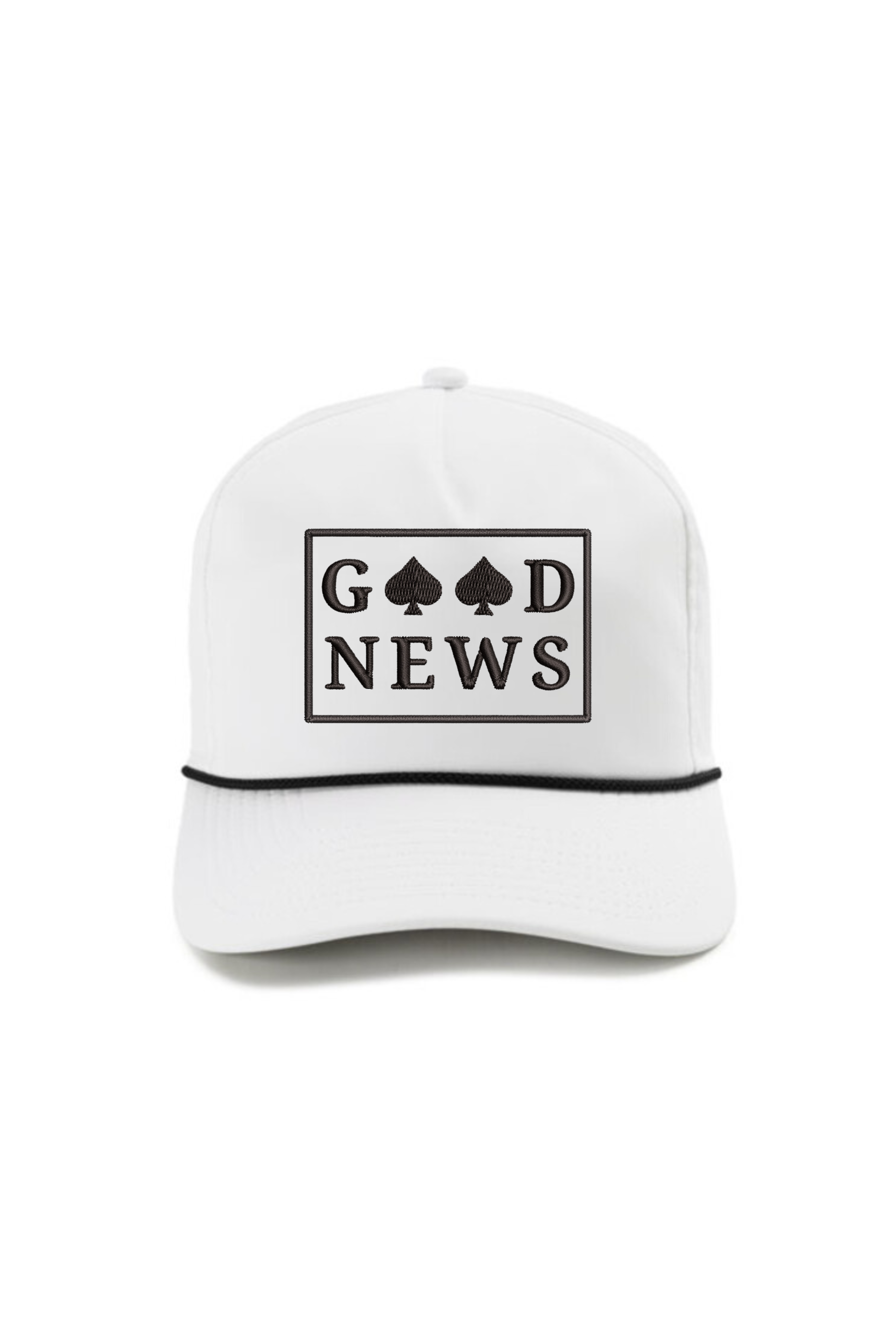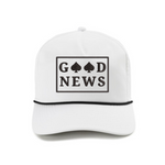 Stay stylish on and off the course with our Good News Hat. Designed for comfort and performance, this hat features a breathable, lightweight fit with an adjustable closure for the perfect feel. Whether you're teeing off or keeping it casual, this hat is the perfect way to rep your game in style.